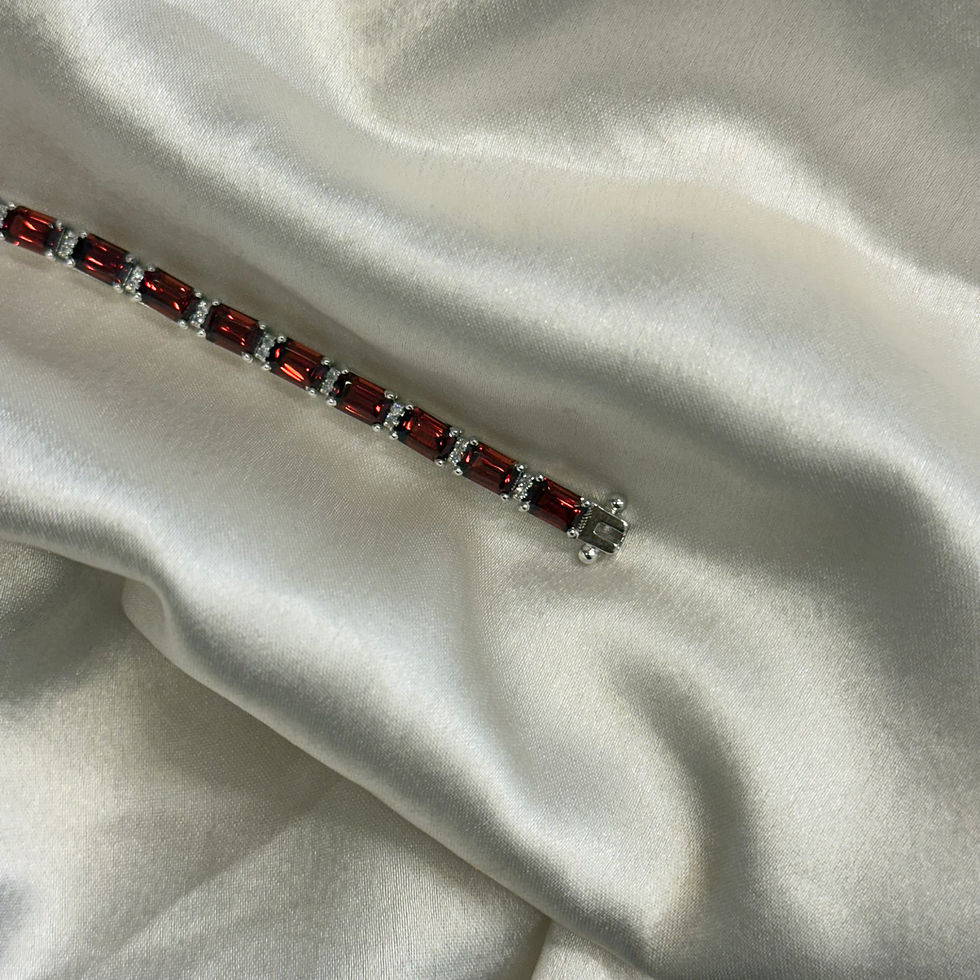 Natural Garnet Rectangle 925 Sterling Silver Open Box Clasp Bracelet