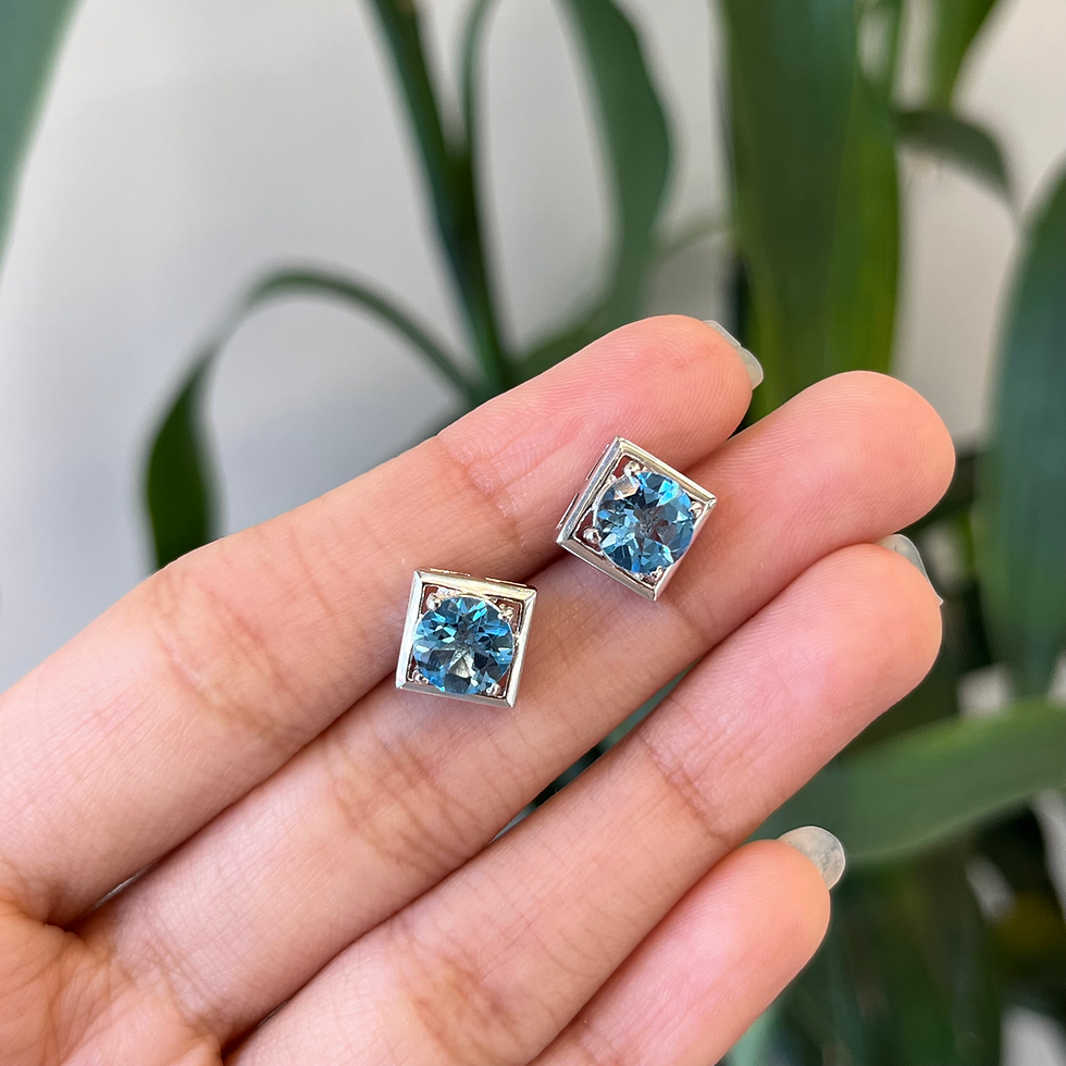Natural Blue topaz round square studs earrings
