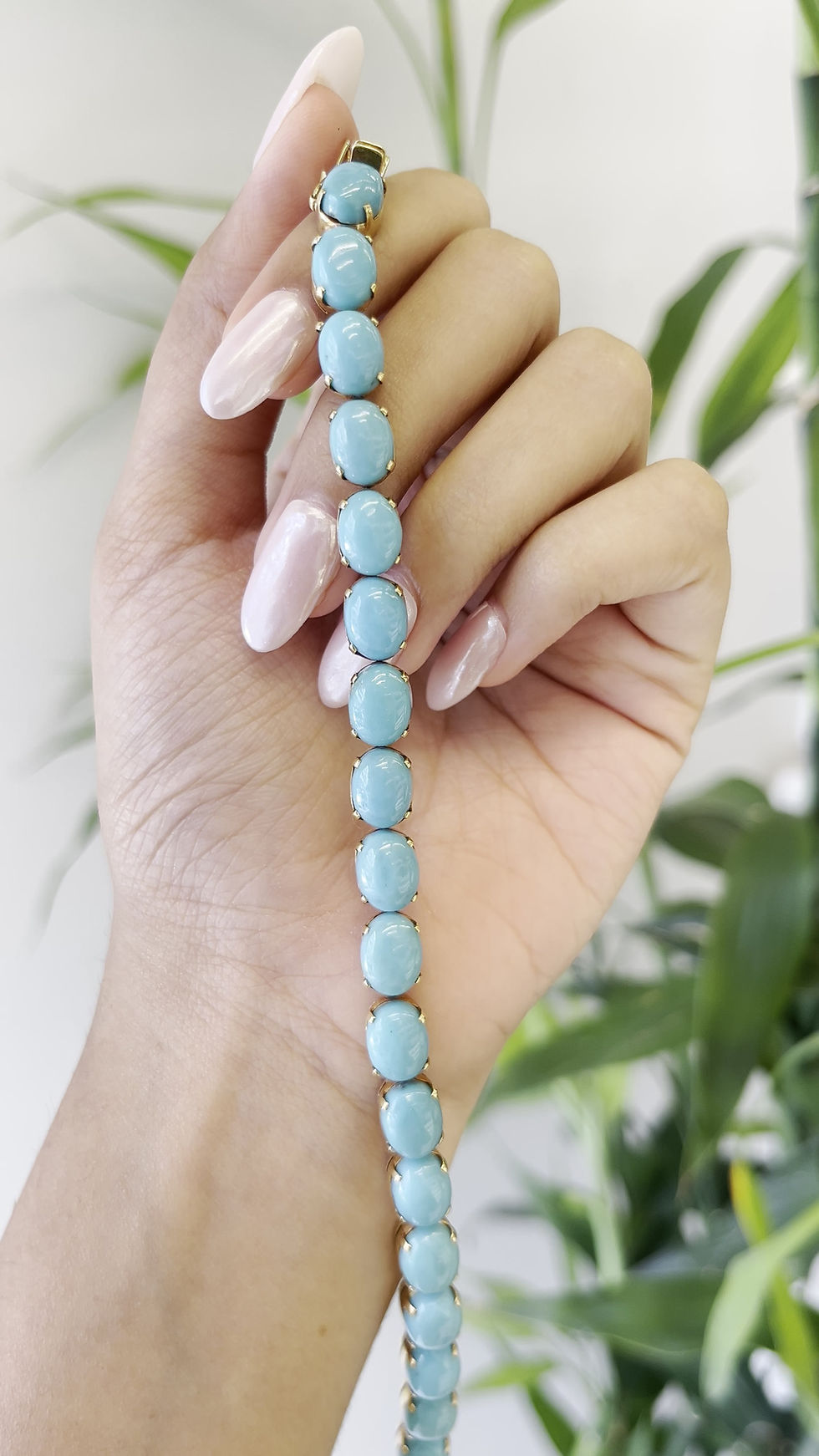 Natural Turquoise (Feroza) yellow gold 14 karat bracelet