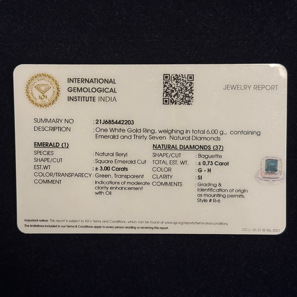 Natural IGI certified Emerald 14K gold ring band
