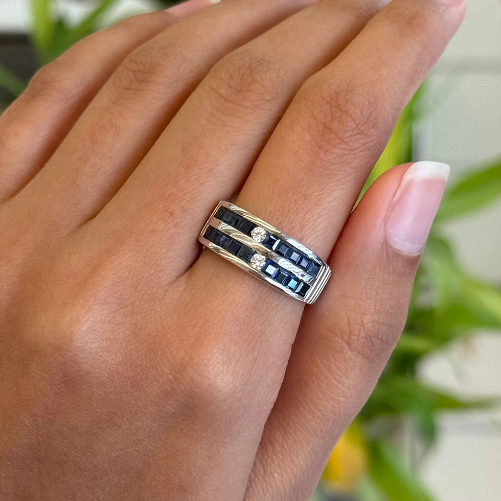 Natural Blue Sapphire 925 Sterling Silver Band Ring